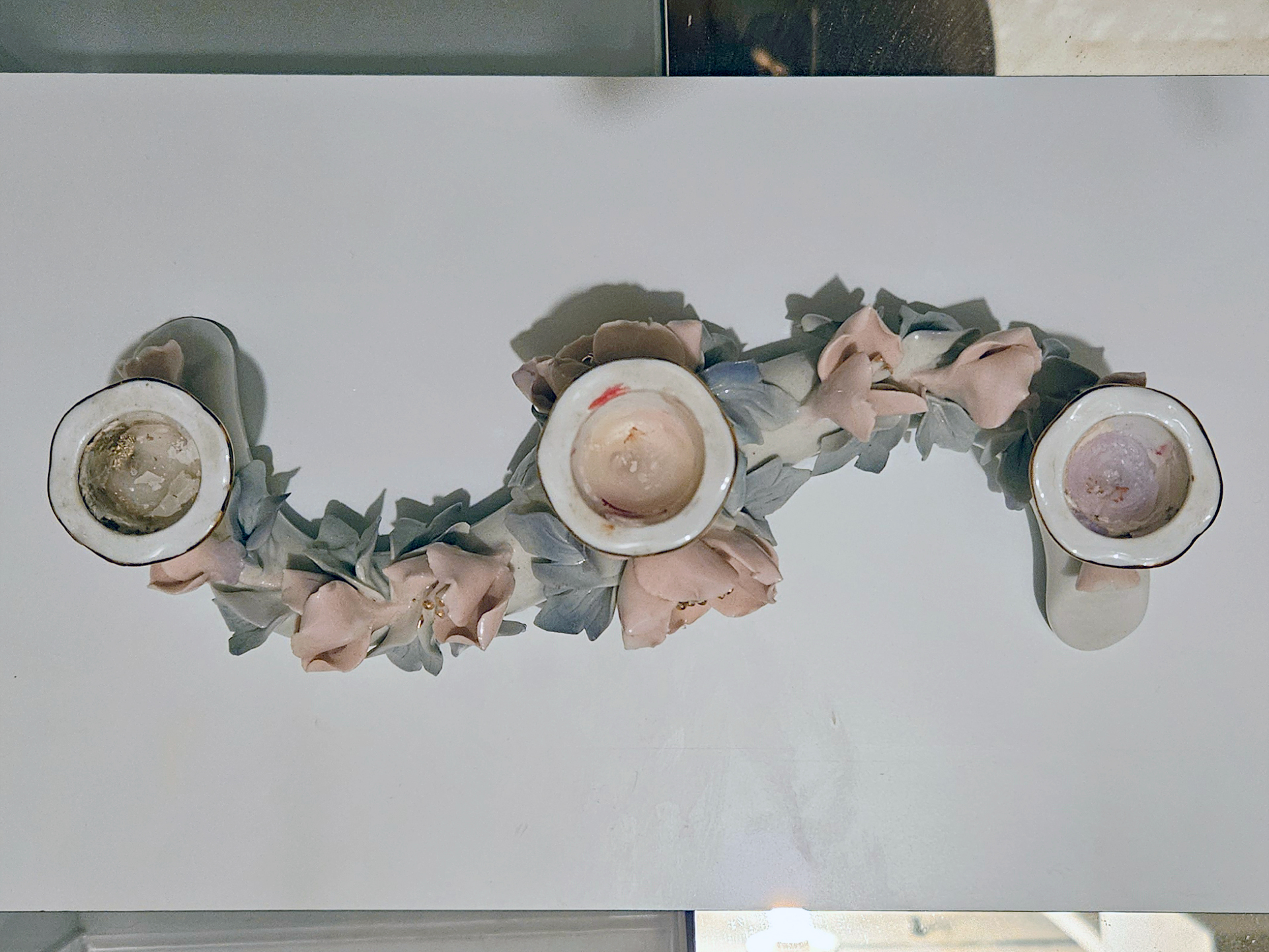 Kwiatowy świecznik porcelanowyna 3 świeczki, Alba Julia (Rumunia)